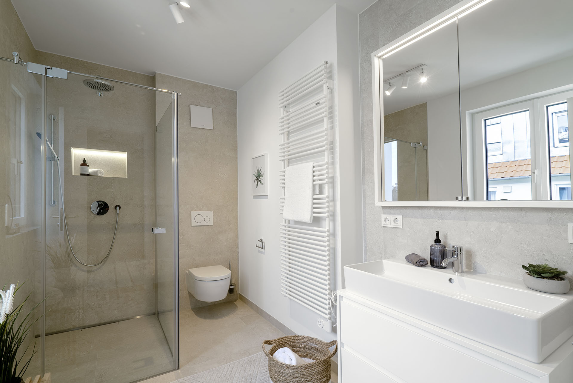 - schreinergefertigte Spiegel- und Unterbauschränke