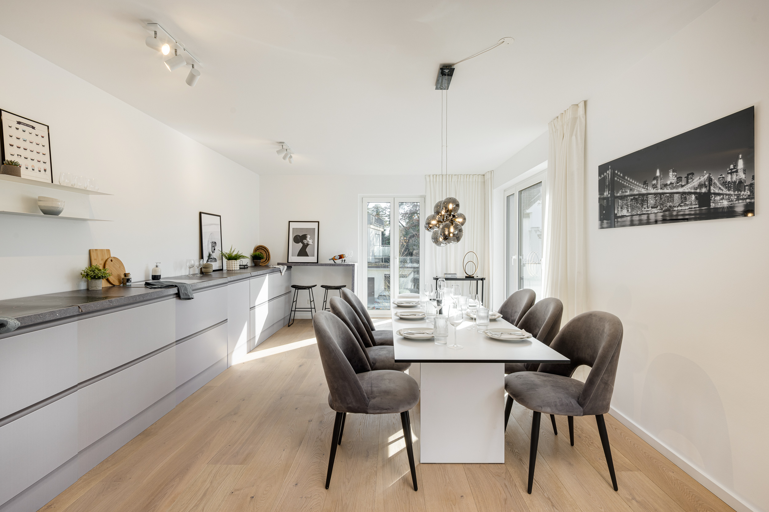 Großzügig geplant, modern gestaltet und durch Realteilung voneinander unabhängig – dieses Häuser-Ensemble in der Fasanenstraße bietet in der urbanen Stadtlandschaft die ideale Wohnform für viele Generationen. Jedes der sechs Stadthäuser ist einzigartig. Die versetzten Fronten mit französischen Balkonen, die nach Westen ausgerichteten Terrassen in jeder Etage und die zum Teil bodentiefen Fenster bringen Spannung in den Baukörper. Die wohlüberlegte Architektur lässt nicht nur viel Licht ins Haus, sondern sorgt auch dafür, dass jedes Haus ein Unikat ist.